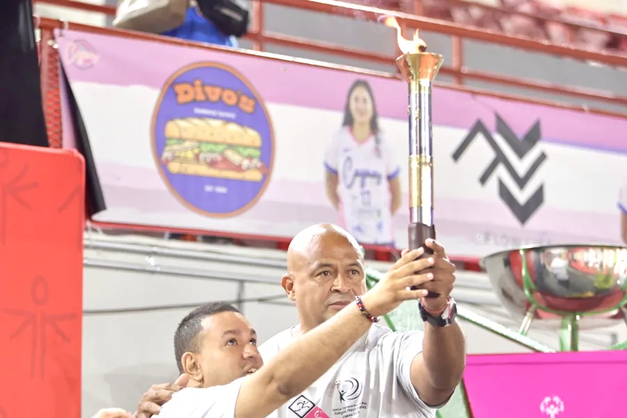 Ambos entrenadores cargaron la antorcha de la “llama de la esperanza” mientras eran escoltados por el centro de la cancha del Coliseo por varios de los atletas cagueños, grupo integrado por Omar Romero, Sophia Plá, Guillermo Fontánez, Martha Claudio, Melvin Rodríguez y Roselyn Sánchez, además de un grupo de oficiales de la Policía Municipal, para luego encender el pebetero de estos Juegos Nacionales, que fueron declarados inaugurados por el Alcalde Miranda Torres.